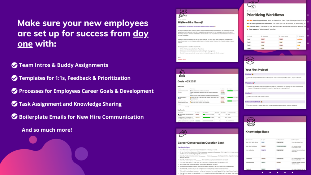 ✔️ Knowledge Wiki ✔️ New Employee To Do List ✔️ Company Handbook Template ✔️ Employee Directory ✔️ Company Acronyms ✔️ Career Conversation Question Bank